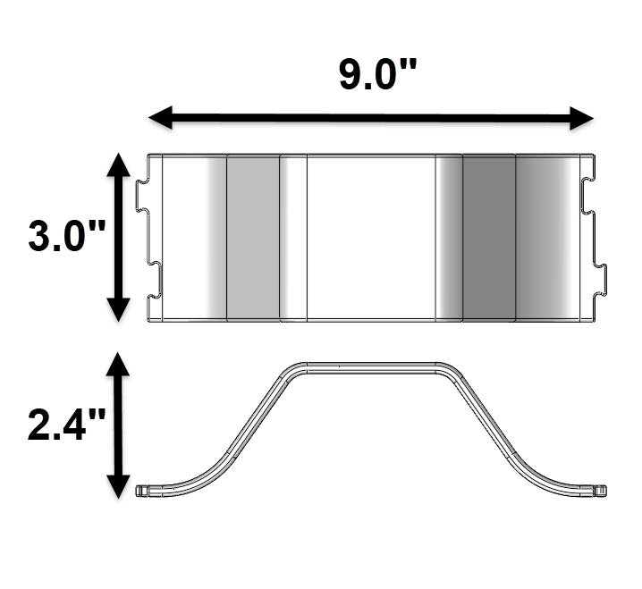 Approximate size - 2.4” x 3.0" x 9.0"